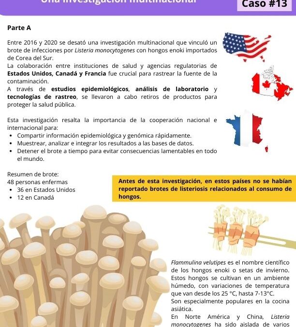 Entre 2016 y 2020 se desató una investigación multinacional que vinculó un brote de infecciones por Listeria monocytogenes con hongos enoki importados de Corea del Sur.