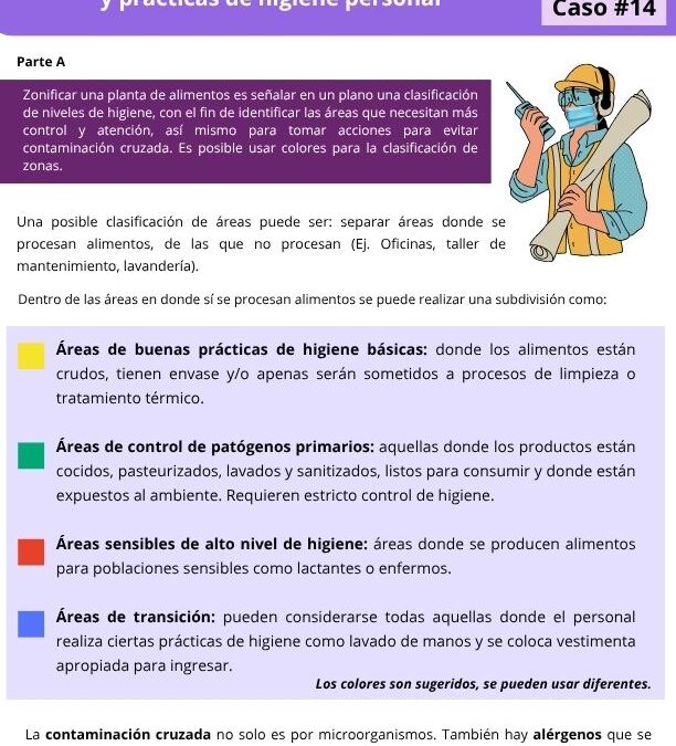 Zonificar una planta de alimentos es señalar en un plano una clasificación de niveles de higiene, con el fin de identificar las áreas que necesitan más control y atención, así mismo para tomar acciones para evitar contaminación cruzada. Es posible usar colores para la clasificación de zonas.